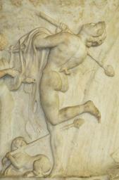 | Keywords: Borghese Vase Louvre Ma86 n4.jpg Dancing satyr wearing a pardalis and holding a thyrsus in the right hand and a Panther fur-skin in the left hand; below a panther holding a thyrsus Detail of the side A from the Borghese Vase Attic work Found in 1569 in the Horti Sallustiani Rome Satyre dansant portant une pardalide et un thyrse ; détail de la face A du Vase Borghèse Œuvre attique Decouvert en 1569 dans les Jardins de Salluste à Rome ca 40 30 BC Pentelic marble cm 120 135 height is given without the foot Institution Louvre object department Greek Etruscan and Roman antiquities room ID 159 26086 object history credit line Borghese Collection accession number Ma 86 MR 985 own photo date 2007 Marie-Lan Nguyen artwork license PD-old-100 photo license other versions Satyrs in classical reliefs Thyrsus Borghese Vase Dancing satyrs Lyres in sculpture Reliefs of leopards Sculptures of people with grapes Male human backs in art |
