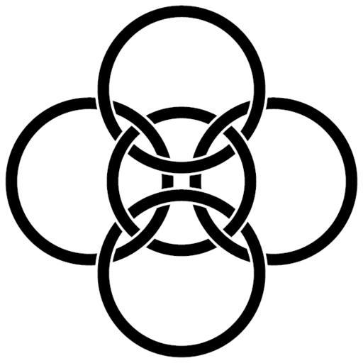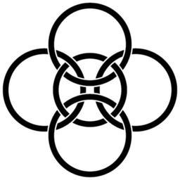 | Keywords: Borromean-cross.png A Borromean cross which contains four Borromean rings configurations arranged in a cross shape This means that no two circles are directly interlinked and cutting the central loop frees the other four circles This could be interpreted as a Christian symbol since it combines the cross with the Borromean rings often used as a symbol of the Christian Trinity However a similar design not Borromeanly-linked is found as a Japanese mon in Handbook of Design and Motifs 1950 and may be occasionally used as a neo-pagan five worlds symbol For another image on the Borromean rings + cross theme see File Cross-Trinity-Borromean-interlinked svg For an indefinitely extended Borromean chain-mail pattern see Image Borromean-chainmail-tile png Generated by means of the following PostScript code <pre> 300 396 translate 12 5 setlinewidth /A 85 0 360 arc closepath stroke def 0 0 75 0 360 arc closepath stroke -100 0 A 100 0 A 1 setgray 18 setlinewidth 0 -100 A 0 100 A 0 setgray 12 5 setlinewidth 0 -100 A 0 100 A 0 0 75 23 5 44 arc 1 setgray 18 setlinewidth stroke 0 0 75 22 5 45 arc 0 setgray 12 5 setlinewidth stroke 0 0 75 -44 -23 5 arc 1 setgray 18 setlinewidth stroke 0 0 75 -45 -22 5 arc 0 setgray 12 5 setlinewidth stroke 0 0 75 136 155 5 arc 1 setgray 18 setlinewidth stroke 0 0 75 135 157 5 arc 0 setgray 12 5 setlinewidth stroke 0 0 75 -156 5 -136 arc 1 setgray 18 setlinewidth stroke 0 0 75 -157 5 -135 arc 0 setgray 12 5 setlinewidth stroke -100 0 85 38 5 59 arc 1 setgray 18 setlinewidth stroke -100 0 85 37 5 60 arc 0 setgray 12 5 setlinewidth stroke -100 0 85 -59 -38 5 arc 1 setgray 18 setlinewidth stroke -100 0 85 -60 -37 5 arc 0 setgray 12 5 setlinewidth stroke 100 0 85 121 141 5 arc 1 setgray 18 setlinewidth stroke 100 0 85 120 142 5 arc 0 setgray 12 5 setlinewidth stroke 100 0 85 -141 5 -121 arc 1 setgray 18 setlinewidth stroke 100 0 85 -142 5 -120 arc 0 setgray 12 5 setlinewidth stroke showpage EOF</pre> 2007 AnonMoos For other Trinity crosses see Image Cross-Bottony-Heraldry svg Image Triquetra-Cross png Image Celtic-Cross-Vodicka-decorative-triquetras-red svg and perhaps Image Cross-Flory-Heraldry svg Borromean-cross svg Knots and links on white background Borromean crosses Black line knots and links |