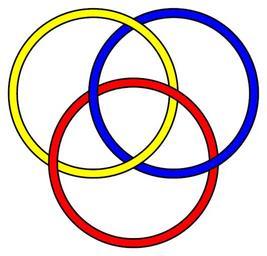 | Keywords: Borromeanrings.png Borromean rings knot -- no two circles are directly linked but the three are collectively interlinked Cutting one ring frees the other two In terms of knot theory a Brunnian link For a version of the Borromean rings depicted in triangular form see Image Valknut-Symbol-borromean png For extended Borromean patterns see Image Borromean-cross png / Image Borromean-cross svg and Image Borromean-chainmail-tile png For other more complex three-component Brunnian links which are not equivalent to the Borromean rings see Image Brunnian-3-not-Borromean png and Image Three-triang-18crossings-Brunnian png This version was generated by means of the following PostScript code <pre> 77 110 translate 75 dup scale /y 240 120 3 sqrt mul add def 20 setlinewidth 426 y 240 0 360 arc closepath gsave 30 setlinewidth 0 setgray stroke grestore 0 0 1 setrgbcolor stroke 186 y 240 0 360 arc closepath gsave 30 setlinewidth 0 setgray stroke grestore 1 1 0 setrgbcolor stroke 306 240 240 0 360 arc closepath gsave 30 setlinewidth 0 setgray stroke grestore 1 0 0 setrgbcolor stroke 30 setlinewidth 0 setgray 426 y 240 -65 -55 arc stroke 426 y 240 175 185 arc stroke 20 setlinewidth 0 0 1 setrgbcolor 426 y 240 -66 -54 arc stroke 426 y 240 174 186 arc stroke EOF</pre> original version uploaded to en wikipedia in 2004 attribution information apparently lost see http //en wikipedia org/w/index php title Special Log page File 3ABorromeanrings png ; current version uploaded by AnonMoos in 2006 original version uploaded to en wikipedia in 2004 attribution information apparently lost see http //en wikipedia org/w/index php title Special Log page File 3ABorromeanrings png ; current version uploaded by AnonMoos in 2006 BorromeanRings svg Borromean rings Images with PostScript source code Outline knots and links Knots and links on white background Blue red yellow Circular Borromean rings 3 component links 6 crossing number knots and links Alternating knots and links 9 stick number knots and links |