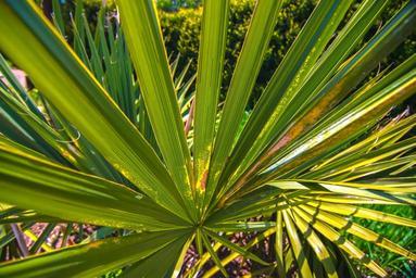 Keywords: botanical botany bright close contrast diagonal effects exotic foliage frond garden green horizontal leaf leaves light nature object palm pattern