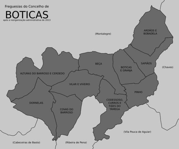 | Keywords: Boticas freguesias 2013.svg pt Freguesias do concelho de Boticas Fontes Diário da República Reorganização administrativa do território das freguesias Lei n º 11-A/2013 de 28 de janeiro Direcção-Geral do Território Carta Administrativa Oficial de Portugal CAOP versão 2013 Continente http //www dgterritorio pt/ficheiros/cadastro/caop/caop_download/caop_2013_0/caop2013cont_zip_2 en Civil parishes in the municipality of Boticas Portugal Sources Diário da República Administrative reorganization of the civil parishes' territory Law n 11-A/2013 from 28th January Direcção-Geral do Território Official Administrative Chart of Portugal CAOP version 2013 Mainland http //www dgterritorio pt/ficheiros/cadastro/caop/caop_download/caop_2013_0/caop2013cont_zip_2 2014-03-22 01 55 20 own Gazilion cc-zero Uploaded with UploadWizard Boticas SVG maps of freguesias in Portugal |