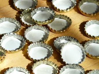 Keywords: bottle caps sheet sheet metal piece crown shaped gold golden sparkle closure bottle