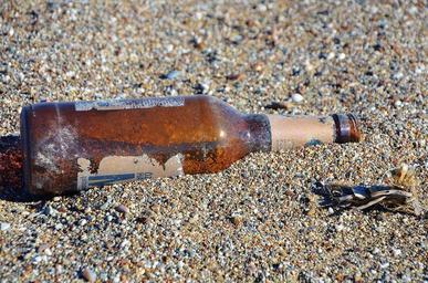 Keywords: bottle sand beach shore sandy glass message