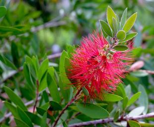 Keywords: bottlebrush blossom bloom red bottles brush brush flower callistemon citrinus