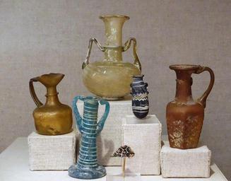 | Keywords: Bottles, perfume flasks, etc, Roman 1st-4th century AD, except for the small, possibly Greek alabastron 5th-4th century BC, glass - Spurlock Museum, UIUC - DSC05896.jpg en Exhibit in the Spurlock Museum University of Illinois at Urbana-Champaign - Urbana-Champaign Illinois USA This work is old enough so that it is in the public domain 2015-06-14 15 58 47 own Daderot other versions cc-zero Ancient Roman glassware in the Spurlock Museum Ancient Roman glassware in the United States | ||||