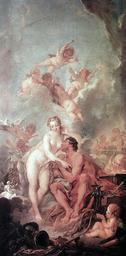 | Keywords: Boucher Venus and Mars.jpg Artwork Creator François Boucher Venus and Mars previously wrongly called Venus and Vulcan Vénus chez Mars dit auparavant à tort Vénus chez Vulcain Вене а и а с п ежде ошибочно называли Вене а и Вулкан 1754 oil canvas cm 164 5 71 5 Wallace Collection London f Boucher / 1754 Transfered from ru wikipedia P429 Other versions <gallery> File BoucherFrancois MarsEtVenus jpg <div align center >Mars and Venus surprised by Vulcan by François Boucher c 1754 <br/><small>London Wallace Collection</small></div><div align center >Mars et Vénus surpris par Vulcain par François Boucher vers 1754 <br/><small>Londres Wallace Collection</small></div><div align center > а с и Вене а застигнутые Вулканом аботы Ф ансуа Буше ок 1754 г <br/><small>Лондон Соб ание Уоллес</small></div> </gallery> PD-100 1750s paintings by François Boucher 1754 1754 paintings Anvils in art Arrows in art Axes in art Chariots in paintings Nude paintings of couples in love Forges in art Hammers in art Holding hands in art Lion fur-skins in art Oil paintings of people 1754 Nets in art Paintings by Boucher in the Wallace Collection 1754 Paintings of nude couples Paintings of sitting men Pearl jewellery in art Doves associated with goddesses of love and fertility Paintings of putti in France Plumed helmets in art Putti on clouds Putti with torches Quivers in art Rococo paintings of people 1754 Rococo paintings of putti 1754 Seduction in art People with spears in art Transparent clothing in art Paintings of Venus and Cupid Boucher; Venus and Mars; 1754 Venus and Mars 1754 Venus by François Boucher 1754 Leg vices Watching in art Paintings with over-cropped borders Paintings of putti in the United Kingdom 18th-century oil on canvas paintings in the United Kingdom Cupid with Venus and Mars Uploads by Mattes from external sources Paintings of nude standing females in the 18th century |