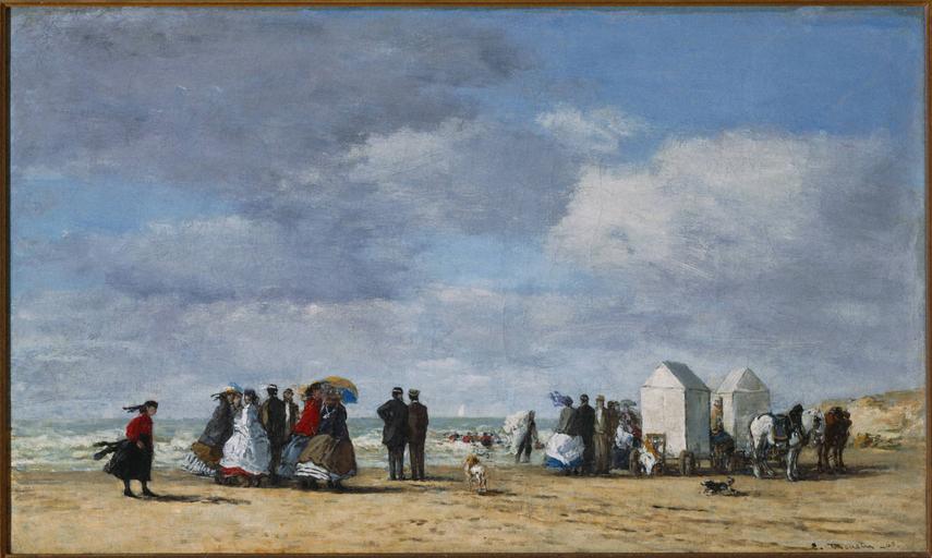 | Keywords: Boudin, Eugène, The Beach at Trouville, 1865.jpg Artwork Creator Eugène Boudin Boudin took Claude Monet under his wing in the 1850s when the aspiring artist was still in his teens Monet came to embrace the older painter ™s primary artistic concerns which included a fascination with the transience of visual sensation and the effects of light and weather on the landscape He also taught the young man to value everyday scenes of French life and leisure Boudin was among the first artists to capture in oils that novel yet prosaic nineteenth-century pastime the beach vacation Such excursions were made possible by the new railway lines which first reached the northern coast of France where this scene was painted in the late 1840s 1865 Oil on canvas Size cm 38 62 8 <br> frame Size cm 68 6 94 8 3 Institution Princeton University Art Museum European Art object history exhibition history credit line Gift of the Estate of Laurence Hutton accession number y1950-65 place of creation Princeton University Art Museum PD-old-100 cite web The Beach at Trouville y1950-65 http //artmuseum princeton edu/collections/objects/23887 Princeton University Art Museum European art in the Princeton University Art Museum 1865 Paintings of Trouville-sur-Mer Eugène Boudin Seascapes by Eugène Boudin Paintings by Eugène Boudin in the Princeton University Art Museum 1865 |