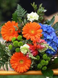 Keywords: bouquet of flowers colorful flowers color orange blue green