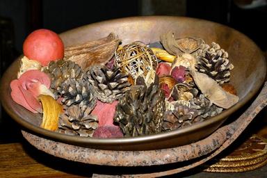 Keywords: bowl brass antique cones pine souvenir nuts fruits dried bark