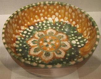 | Keywords: Bowl from China, Tang dynasty (618-906), earthenware with sancai glaze, HAA.JPG en Bowl from China Tang dynasty 618-906 earthenware with sancai glaze Honolulu Academy of Arts own Hiart photo 2011 Ceramic bowls Chinese ceramics in the Honolulu Museum of Art Chinese earthenware Sancai ceramics of the Tang Dynasty Cc-zero |