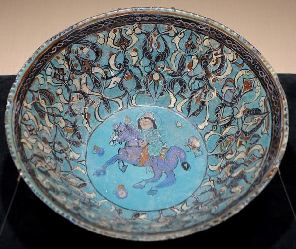 | View Original: | Bowl with design of equestrian figure, Iran, Minai type, 12th-13th century AD, enamel-painting over blue glaze pottery - Matsuoka Museum of Art - Tokyo, Japan - DSC07214.JPG (3274x2751) | |||