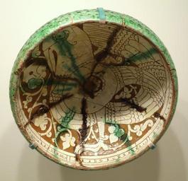 | Keywords: Bowl with fantastic bird, Garrus ware, Iran, Garrus district, Seljuk period, 12th or 13th century AD, earthenware with carved and painted slip design under glaze - Cincinnati Art Museum - DSC03987.JPG en Exhibit in the Cincinnati Art Museum Cincinnati Ohio USA This artwork is in the public domain because the artist died more than 70 years ago Photography was permitted in the museum without restriction 2013-05-14 11 13 35 own Daderot cc-zero Seljuk pottery in the Cincinnati Art Museum Uploaded with UploadWizard Slipware |