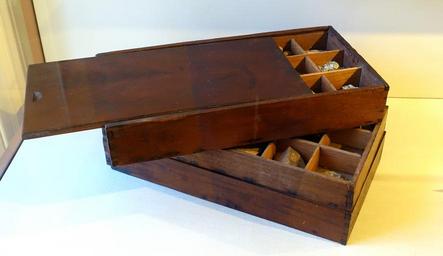 | Keywords: Box for geological specimens, made by Henry David Thoreau, mahogany, pine - Concord Museum - Concord, MA - DSC05637.JPG en Exhibit in the Concord Museum Concord Massachusetts USA 2014-12-30 13 32 21 own Daderot other versions PD-old-100 cc-zero Henry David Thoreau exhibits in the Concord Museum | ||||