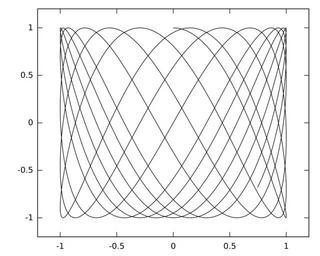 | Keywords: Box orbit full.svg A full box orbit own Gnuplot 2011-06-08 Demmo A graph of simple function doesn't warrant copyright at all Gnuplot Version 4 4 patchlevel 3 <source lang gnuplot > set term svg dynamic font sans-serif set parametric set nokey set trange 0 40 set xrange -1 2 1 2 set yrange -1 2 1 2 set samples 1000 plot sin t cos 2 1 t lc rgb black </source> Celestial mechanics Orbits Lissajous_curves Images with Gnuplot source code | ||||