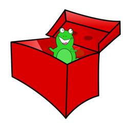 Keywords: box red frog green surprise cartoon isolated cute smile surprised funny