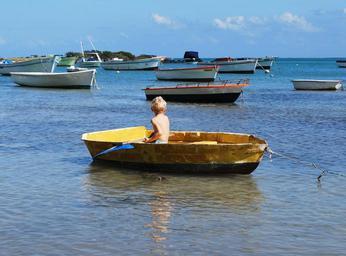 Keywords: boy boat paddle alone sea ocean yellow sailing child water summer childhood vacation young person boating standing sailboat old