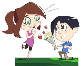 Keywords: boy cartoon comic comic characters couple female flowers girl giving hearts love male passion romance valentine