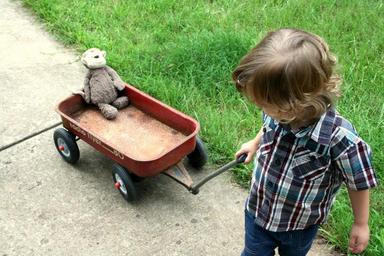 Keywords: boy child stuffed animal stuffed monkey radio flyer wagon son life family childhood toddler