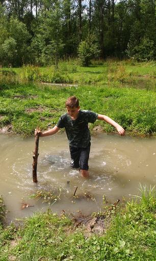 Keywords: boy ditch water nature play sunny grass