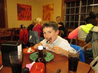 Keywords: boy eating chocolate fast food restaurant