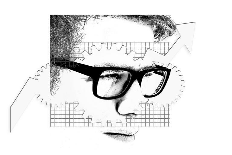 Keywords: boy face head success gears time clock interaction start up business entrepreneur career freelancer company ascent development start human youth eyes portrait person man