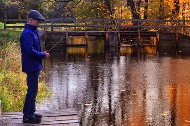 Keywords: boy fishing autumn pond outdoors childhood son fish kid pole fall