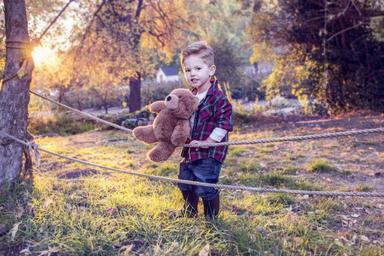 Keywords: boy kid childhood child cute toddler playing fall teddy bear bear autumn portrait
