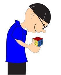Keywords: boy man cube toy game holding playing nerd glasses interest fascination blue