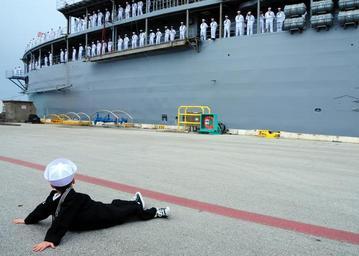 Keywords: boy navy suit pier dock saying goodbye ship sailors bay harbor water san diego california outside memory