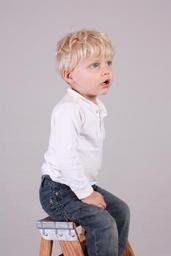 Keywords: boy portrait child sitting ladder step ladder balancing careful activity looking young little son small expression human