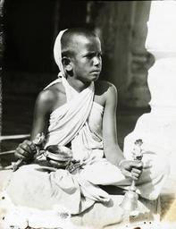 | Keywords: Boy priest, Siwan, India, ca. 1906 (IMP-CSCNWW33-OS14-29).jpg en <br> Boy priest Siwan India ca 1906 Black and white lantern slide picturing a boy priest in robes holding a metal bell in one hand a metal sceptre in his other hand and resting a small bowl on his knee The boy is sitting cross-legged in what seems to be the entrance to a building The boy is probably a Hindu rather than a Buddhist priest This slide comes from a collection created by missionaries from Regions Beyond Missionary Union an interdenominational Protestant evangelical mission working in northeast India Bihar and Orissa and Nepal Photographer Unknown Filename IMP-CSCNWW33-OS14-29 tif Coverage date 1900/1910 Subject unesco Hinduism; Clergy; Boys Part of collection International Mission Photography Archive ca 1860-ca 1960 Part of subcollection Photographs from the Centre for the Study of World Christianity University of Edinburgh U K ca 1900-ca 1940s Repository name Centre for the Study of World Christianity Archival file Volume3/IMP-CSCNWW33-OS14-29 tif Geographic subject city or populated place Siwan Repository address The University of Edinburgh School of Divinity New College Mound Place Edinburgh EH1 2LX United Kingdom Geographic subject country India Format aacr2 lantern slides 8 2 x 8 2cm Geographic subject continent Asia Rights Contact the repository for details Part of series Regions Beyond Missionary Union India captioned lantern slides CSCNWW33/OS14 Repository email divinity-CSWC ed ac uk Date created 1900/1910 Publisher of the digital version University of Southern California Libraries Subject aat genre portraits Format aat lantern slides; photographs Geographic subject state Bihar Access conditions http //www ed ac uk/schools-departments/divinity/research/centres/world-christianity/collections-resources Geographic subject religious facilities File CSCNWW33/OS14/29 Subject lcsh Priests; Worship 1900/1910 date created author http //digitallibrary usc edu/cdm/ref/collection/p15799coll123/id/78245 PD-old-70-1923 Magic lantern images Images from USC Digital Library uploaded by Fæ International Mission Photography Archive ca 1860-ca 1960 Siwan district |