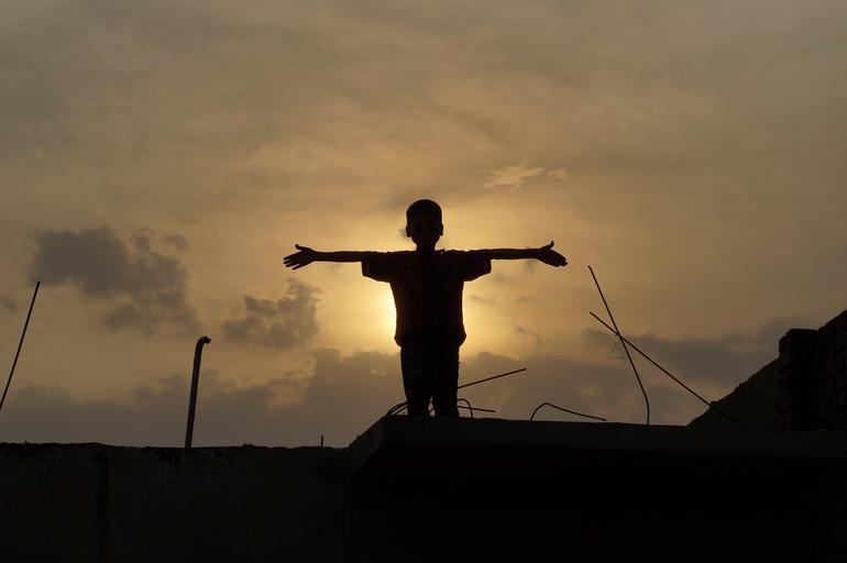 Keywords: boy silhouette sky sunset sunrise dawn dusk hight morning outstretched child person standing
