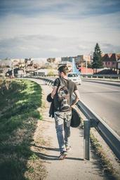 Keywords: boy sunset sky cloud in the evening road backpack
