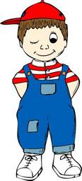 Keywords: boy winking one eye shut winking kid child toddler standing flirt overalls red hat happy cartoon