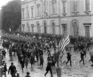 | Keywords: boys flag outdoors marching drum banner city hall cityhall poole collection poolecollection glass negative glassnegative a.h. poole ahpoole arthur henri poole arthurhenripoole the mall themall town hall townhall date established dateestablished waterford national library of ireland nationallibraryofireland monochrome blackandwhite outdoor crowd people black and white See this one's companion photo to find out how the exact date of this event was established... Date: Sunday, 28 May 1898 NLI Ref.: POOLEIMP 563 See this one's companion photo to find out how the exact date of this event was established... Date: Sunday, 28 May 1898 NLI Ref.: POOLEIMP 563 |