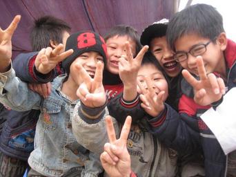 Keywords: boys children happy laughing viet nam school boys peace signs hand gesture