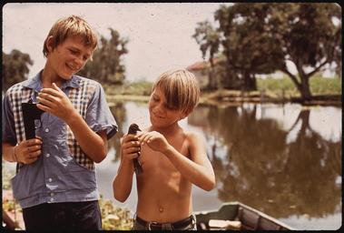 | Keywords: BOYS WITH AIRGUN AND BIRD. THESE FISHERMAN'S SONS LIVE IN BAYOU GAUCHE, DEEP IN THE WETLANDS OF LOUISIANA - NARA - 544211.jpg Scope and content General notes 544211 Local identifier 412-DA-1718 Environmental Protection Agency 12/02/1970 - NARA-Author Messina John 1940- Photographer 8464458 <br /> Louisiana United States North and Central America state 4191135 31 -92 <br /> Still Picture Records Section Special Media Archives Services Division NWCS-S National Archives at College Park 8601 Adelphi Road College Park MD 20740-6001 08/1972 Record group Record Group 412 Records of the Environmental Protection Agency 1944 - 2006 Record group ARC 708 DOCUMERICA The Environmental Protection Agency's Program to Photographically Document Subjects of Environmental Concern compiled 1972 - 1977 Series ARC 542493 File unit File unit ARC Variant control numbers Agency-Assigned Identifier 029/38/001718<br /> NAIL Control Number NWDNS-412-DA-1718 Other versions <gallery> File BOYS_WITH_AIRGUN_AND_BIRD _THESE_FISHERMAN'S_SONS_LIVE_IN_BAYOU_GAUCHE _DEEP_IN_THE_WETLANDS_OF_LOUISIANA_-_NARA_-_544211 tif tif </gallery> NARA-cooperation PD-USGov Bayou Gauche Two brothers 1972 Adolescent boys in the United States Bayou Gauche Boys of the United States Bayou Gauche Birds of Louisiana Males with birds Bayou Gauche People of Louisiana 1972 Children with weapons Firearms of the United States Topless standing boys Bayou Gauche Water reflections of trees in the United States Louisiana 1972 in Louisiana NARA images of Louisiana John Messina - DOCUMERICA Standing adolescent boys Boys wearing shorts Two boys |