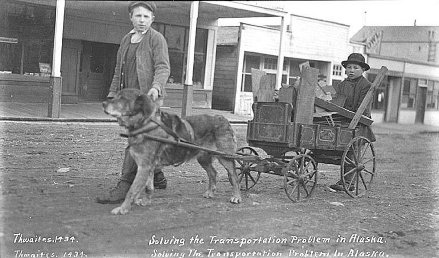 MAKE A MEME View Large Image Boys with dog pulling cart loaded with wood scraps, ca 1912 (THWAITES 245).jpeg check categories 27 October 2016 3 Photograph Creator John E Thwaites Caption on image Solving the transportation problem in Alaska PH Coll 247 379 Subjects ...