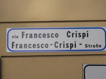 | Keywords: Bozen 1 (140).JPG Bozen-Bolzano ” Francesco-Crispi-Straße Schild own 2011-05-24 07 47 08 User Mattes Commonist Street signs in Italy Signs in Bolzano Bilingual signs in Trentino-South Tyrol Taken with Sony DSC-HX5VN Work by Mattes 2011 User Mattes/Contributions/Topics/Italy/Bozen-Bolzano User Mattes/Contributions/Topics/banners coat of arms flags logos seals and signs |