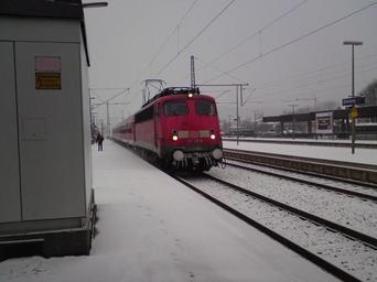 | Keywords: BR 110 bei winterlichem Wetter in Dillenburg.JPG de BR 110 mit Regionalexpress bei der Einfahrt in Dillenburg en BR 110 with Regional Express at the entrance to Dillenburg own JohnnyC95 2010-11-29 Cc-zero Bahnhof Dillenburg DB Class 110 410 |