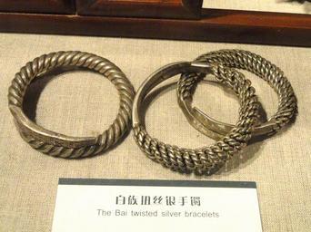 | Keywords: Bracelet - Yunnan Nationalities Museum - DSC04192.JPG Bai silver bracelets Jewelry in the Yunnan Nationalities Museum Kunming Yunnan China I took this photograph 2011-08-13 02 03 03 Daderot Public domain Jewellery in the Yunnan Nationalities Museum Bai jewelry |