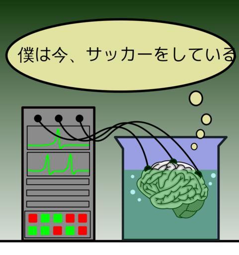 | Keywords: Brain in a vat (ja).svg  Japanese version of en Brain in a vat Famous thought experiment in philosophy of mind 水槽の中の脳 日 語版  Vector data of the brain is from Image Central nervous system svg made by grm_wnr 2007-06-07 me user was a bee Public domain svg template 100px created with Inkscape Brain in a vat Brain in art |