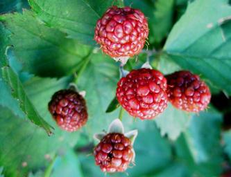Keywords: brambles berries fruit red ripening vine thorny leaves green