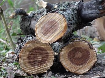 Keywords: branch firewood tree billet brown the sawed down apple tree old garden