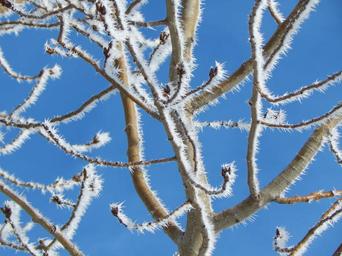 Keywords: branch tree hoarfrost nature blue sky winter snow frost woods