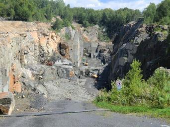 | Keywords: Brannhult.jpg de Steinbruch Brännhult in der Gemeinde Älmhult Småland Südschweden Hier wird ein prä-neoproterozoischer Doleritgang abgebaut der paläoproterozoische Metagranitoide Monzogranite Quarzmonzonite Granodiorite Quarzmonzodiorite durchschlägt Die Gesteine gehören zur sogenannten Protoginzone einer kilometerbreiten Scherzone zwischen den Svekonorwegiden und dem Transskandinavischen Magmagürtel des Baltischen Schildes <ref name Wik_et_al >Nils-Gunnar Wik Dick Claeson Ulf Bergström Fredrik Hellström Cecilia Jelinek Niklas Juhojuntti Johan Jönberger Leif Kero Lena Lundqvist Sam Sukotjo Hugo Wikman 2009 Beskrivning till regional berggrundskarta över Kronobergs län Sveriges geologiska undersökning Uppsala ISBN 978-91-7158-873-9 http //resource sgu se/produkter/k/k142-beskrivning pdf PDF see fig 63 therein and text on same page </ref><ref name map >Nils-Gunnar Wik Dick Claeson Ulf Bergström Fredrik Hellström Cecilia Jelinek Niklas Juhojuntti Johan Jönberger Leif Kero Lena Lundqvist Sam Sukotjo Hugo Wikman 2009 Berggrundskarta över Kronobergs län skala 1 250 000 SGU series K 142 Sveriges geologiska undersökning Uppsala ISBN 978-91-7158-872-2 http //resource sgu se/produkter/k/k142-karta pdf PDF </ref> en Brännhult quarry in Älmhult municipality Småland southern Sweden Here a dyke of Pre-Neoproterozoic dolerite is quarried that cuts through a suite of Paleoproterozoic metagranitoid rocks monzogranite quartz monzonite granodiorite quartz monzodiorite The rocks belong to the so-called Protogine Zone a several kilometers wide shear zone between the Sveconorwegian domain and the Transscandinavian Igneous Belt of the Baltic Shield <ref name Wik_et_al /><ref name map /> sv Stenbrottet i Brännhult Älmhults kommun Småland <references /> own Gräsmark 2011-07-16 56 34 59 N 14 12 32 E region SE-G_heading NNE Cc-zero Quarries in Sweden Älmhult Municipality 2011 in Älmhult Municipality July 2011 in Sweden Geology of Småland |