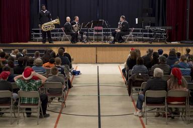 | Keywords: Brass Quintet Holiday Concert 161214-N-ZP059-060.jpg en 161214-N-ZP059-060 SILVERDALE Wash Dec 14 2016 Petty Officer 3rd Class Patrick Melvin a member of Navy Band Northwest's Brass Quintet talks about his tuba during a holiday concert at Central Kitsap Middle School for parents students and staff This was the first time that the Brass Quintet has played at Central Kitsap Middle School U S Navy photo by Petty Officer 2nd Class Jacob G Sisco/Released Unit Navy Public Affairs Support Element Det Northwest DVIDS Tags Holiday Concert; Washington; USN; Music; Bangor; Kitsap; Bass Quintet 2016-12-14 Petty Officer 2nd Class Jacob G Sisco https //www dvidshub net/image/3059544/brass-quintet-holiday-concert 161214-N-ZP059-060 2016-12-14 17 33 SILVERDALE WA US PD-USGov-Military-Navy Navy Band Northwest Images from DoD uploaded by Fæ |