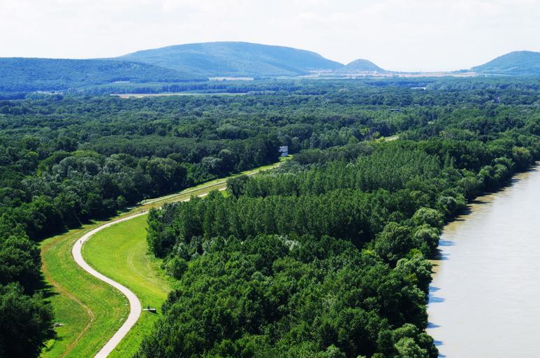 Keywords: bratislava slovakia danube walkway nature view mountains