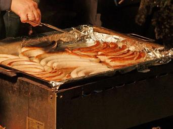 Keywords: bratwurst barbecue grill sausages meat gas grill eat fry