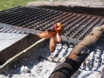 Keywords: bratwurst grill sausage red sausage grill sizzle fry heat eat meat barbecue grilling fire embers delicious